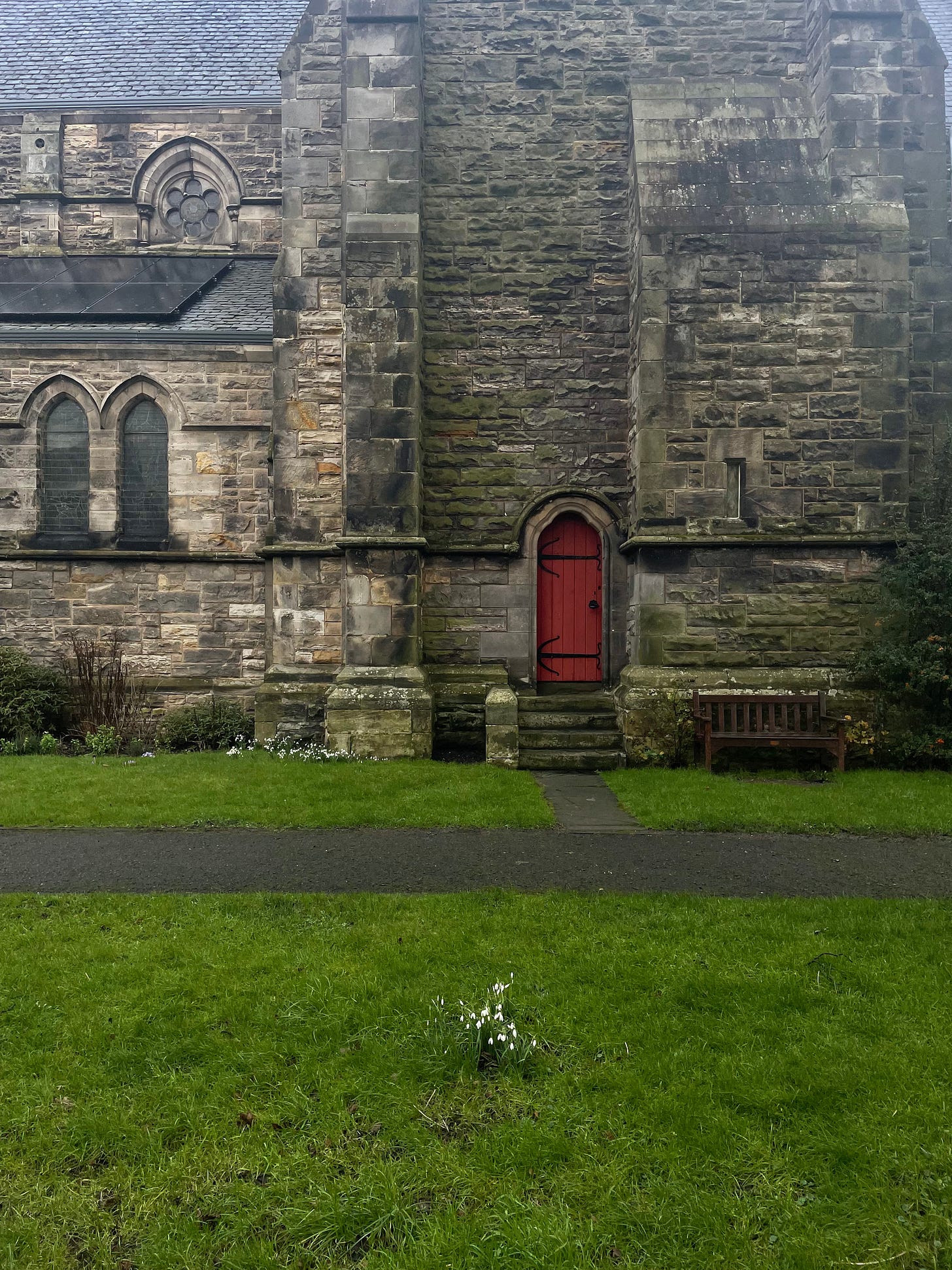 Snowdrops outside one of the churches in town.